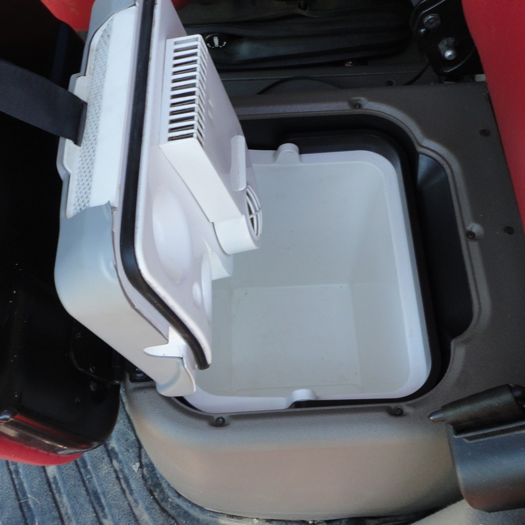 LED lights, mini fridge